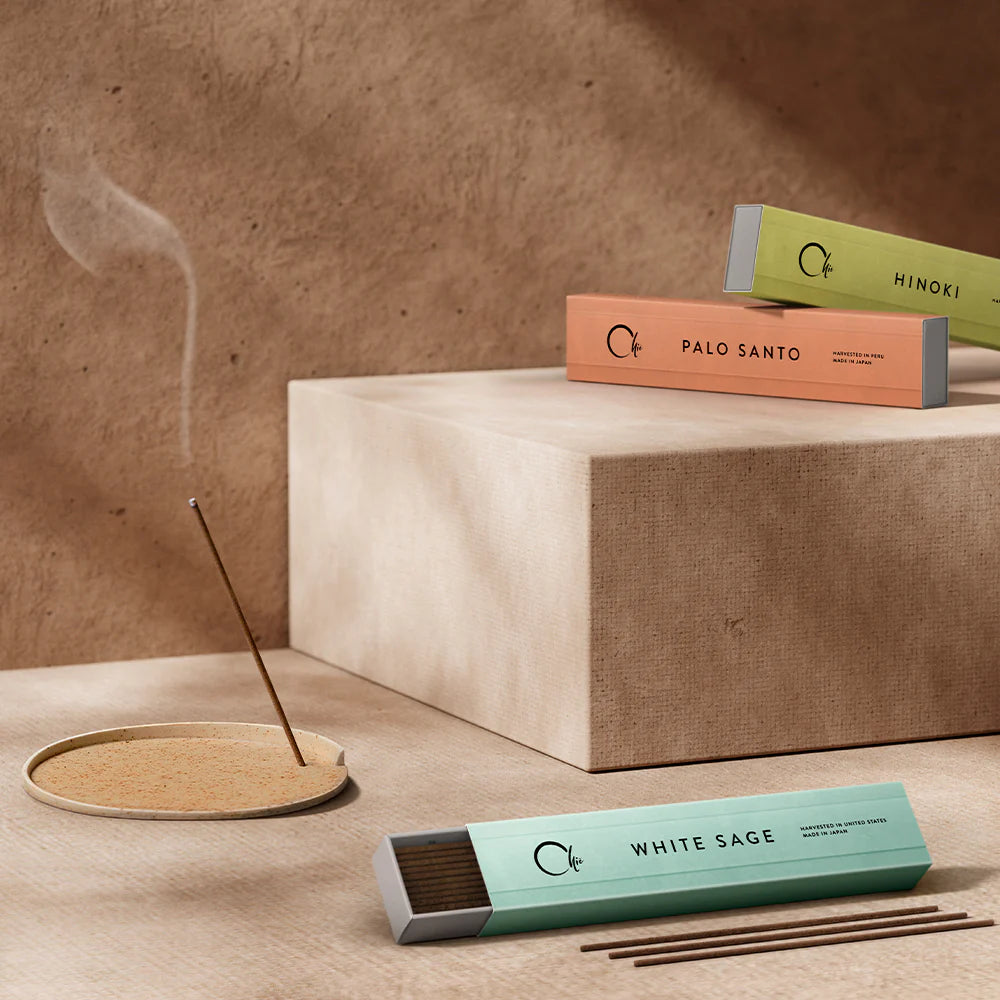 Experience the ancient art of fragrance reimagined for modern life. CHIE incense is crafted with 100% natural aromatic ingredients, each carefully sourced from the “Trees of Gods” – revered trees celebrated around the world for their spiritual significance. From the rich Agarwood of Indonesia and the sacred Palo Santo of Peru, to Japan’s cherished Hinoki and Australia’s prized Sandalwood, every ingredient is selected for its purity and historical reverence. Free of synthetic oils and unaltered in its natural burning time, CHIE is elegantly packaged in a 30-stick box with a mini ceramic holder—inviting you to connect with nature, create mindful space, and perceive the truth with clarity.